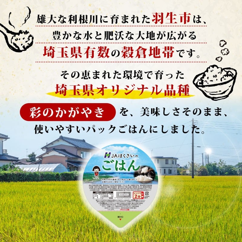 パックごはん 200g×12-36食 お米 米 国産 保存食 大盛 大盛り 備蓄 防災 小分け 手軽 簡単調理 白米 彩のかがやき パックごはん パックご飯 パックライス ご飯 ご飯パック ごはんパック パック レトルト 米 JAほくさい 埼玉県 羽生市