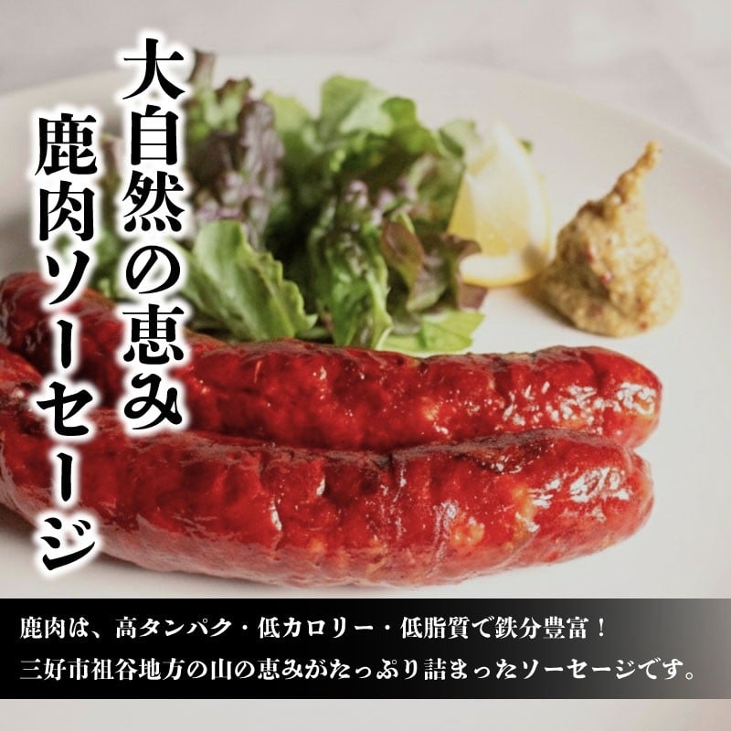 ソーセージ ウインナー 鹿肉 鹿 国産 3本 2~ 6パック ジビエ 希少 部位 ヘルシー 低カロリー 高たんぱく 低脂質 ジューシー BBQ バーベキュー 焼き肉 焼肉 自家製 シカ肉 ビール ワイン 酒 おつまみ カレー シチュー 使いやすい 小分け 冷凍 赤身 健康 天然 いい肉 みよし 徳島 三好 祖谷 祖谷の地美栄