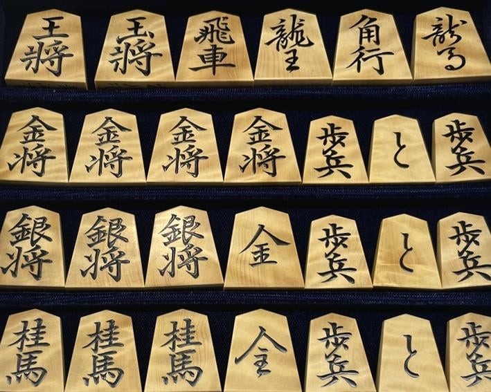 - 1200-08-20 「富月」作 盛上 将棋駒 菱湖書 御蔵島黄楊 杢 【限定1品】