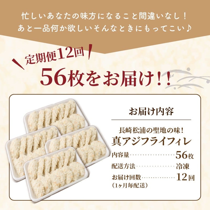 【全12回定期便】「アジフライの聖地 松浦」真アジフライフィレ(14枚)×4P【1ヶ月毎配送】【頒布会】( アジ フライ 大容量 お惣菜 アジフライ 定期便 )【L12-001】