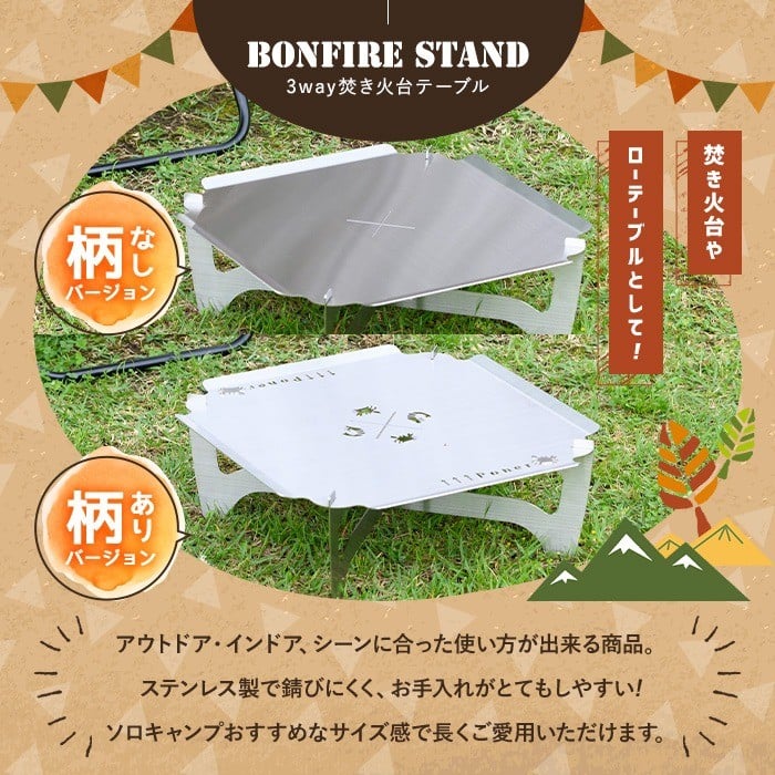 - <柄なしも選べる!>3way 焚き火台テーブル【sm-BL007・sm-BL008】【一瀬製作所】