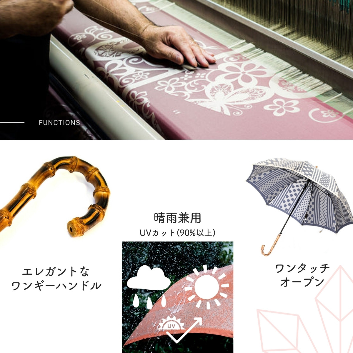 - 高級織物傘【婦人長傘】kirie 切り絵のような繊細な模様の晴雨兼用傘 / 雨具 雨傘 日傘 パステル UVカット 和色 8本骨 ワンプッシュオープン UV加工 送料無料 山梨県 [注目]【n0565_mak】