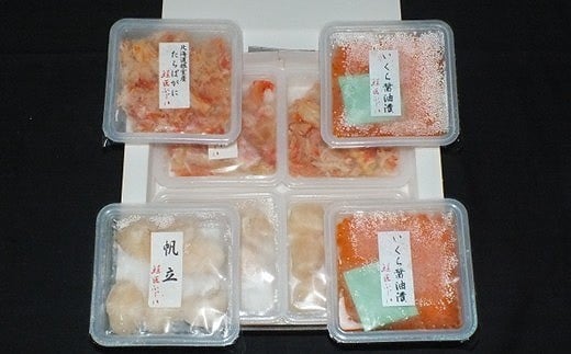 B-42105 【北海道根室産】いくら醤油漬け50g×2P・ボイルたらばがに剥き身70g×3P・ほたて貝柱65g×3P