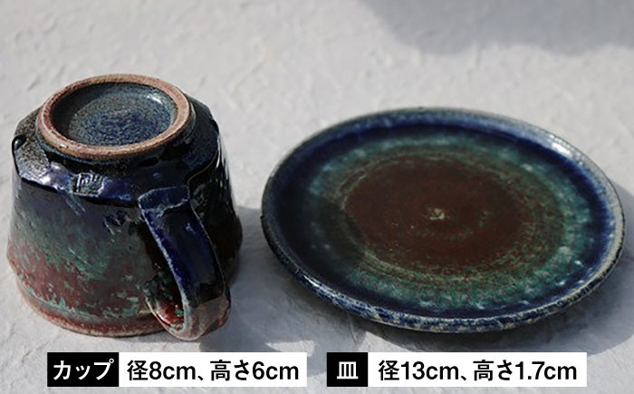 カップ&ソーサー デニム備前(備前焼緋襷藍釉)