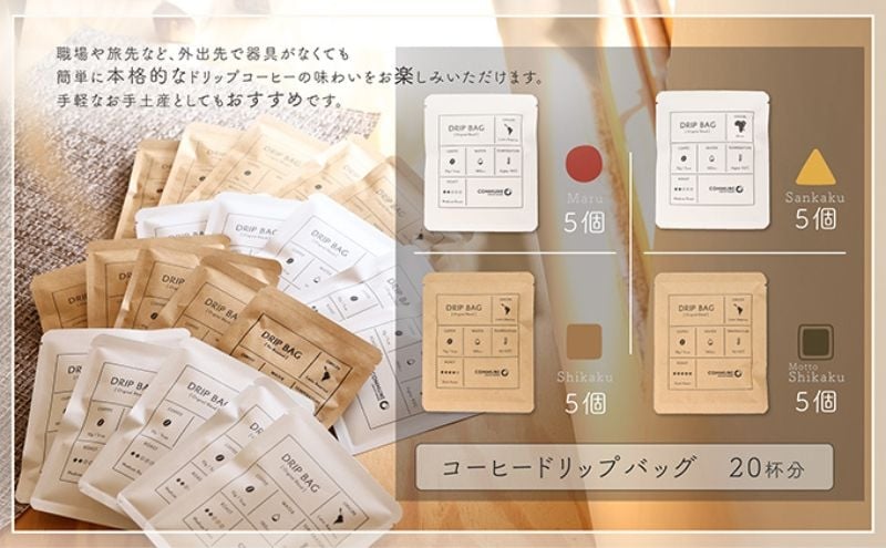 - コーヒードリップバッグ(20杯分) 4種類 珈琲 コーヒー 自家焙煎 ドリップコーヒー お手土産 旅先 職場 おすすめ ブレンド 中浅煎り 中煎り 深煎り 極深煎り ホット アイス 個包装 [№5933-0158]