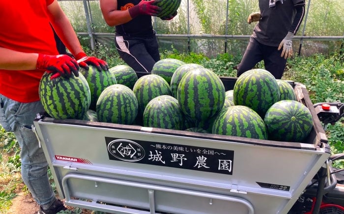 - 【先行予約】 厳選 2玉! 大玉スイカ!4L~5Lサイズ(1玉 約9kg~11kg)すいかの名産地 熊本からお届け 【城野農園】 [ZFV005]