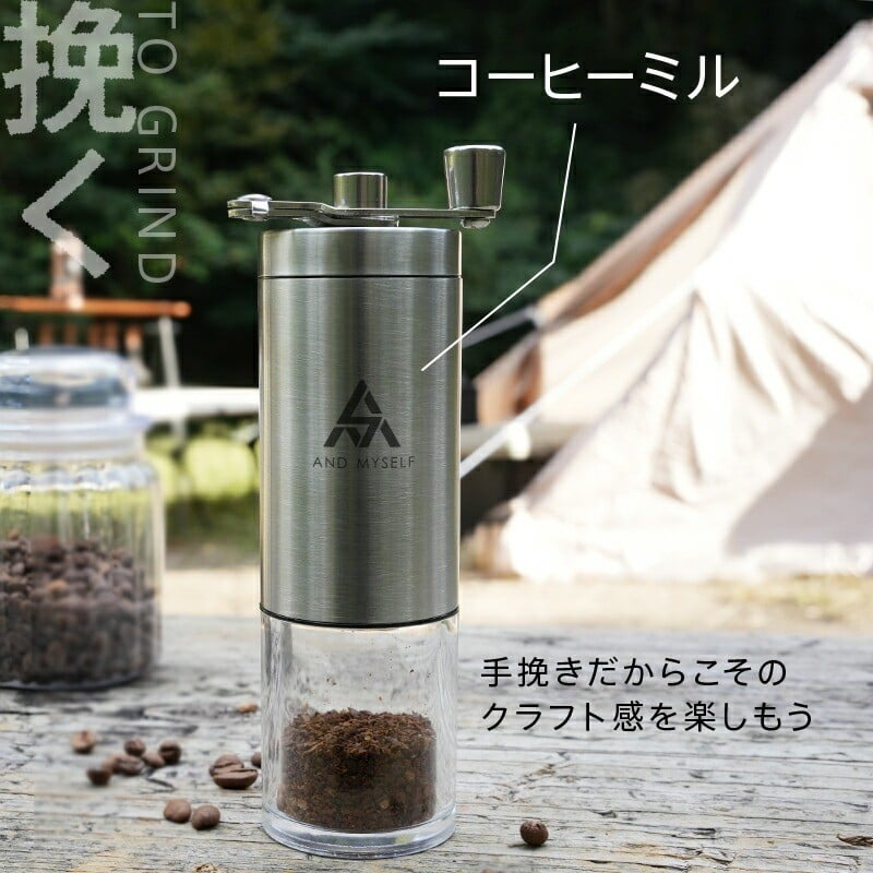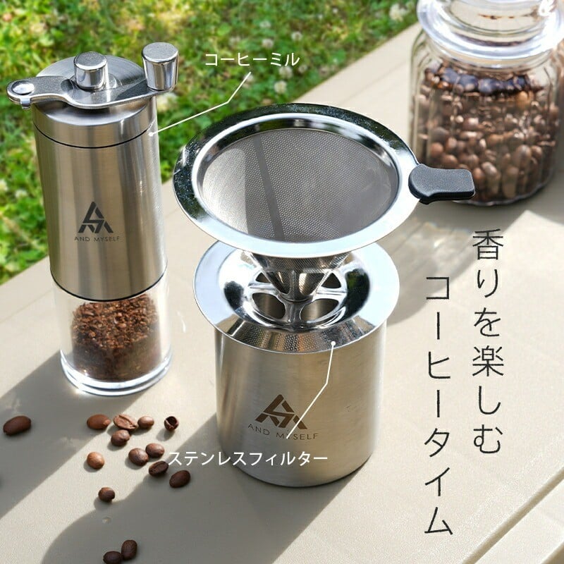 コーヒーミル セット〈ライズクリエイション @Rise〉手動 ステンレス フィルター アウトドア 携帯 収納バッグ付き 珈琲 ミル キャンプ ソロキャンプ 水洗い可能 おしゃれ アンドマイセルフ AND MYSELF 奈良県 奈良市