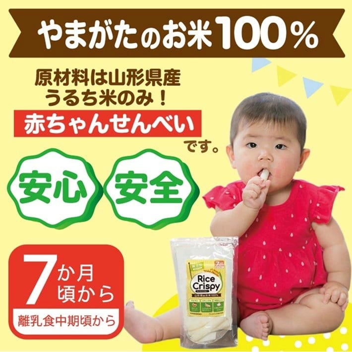 - 赤ちゃん 離乳食 おやつ 無添加 せんべい 6袋 ライスクリスピー うるち米 お菓子 菓子 米菓 手軽 砂糖 加工でんぷん 不使用 子ども キッズ 子育て おかゆ 安心 安全 家族 家庭 時短 酒田米菓 山形 酒田 SZ0308