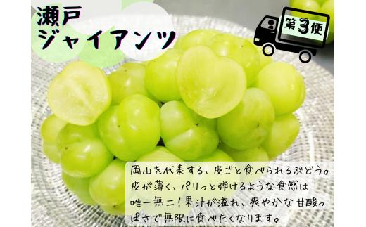 - 【産地直送】※2026年の予約です!※ 岡山 シャインマスカット 入り定番品種 定期便 3回コース【2026年9月下旬~発送予定】離島発送不可 / 数量限定 葡萄 ぶどう ブドウ 果物 マスカット ピオーネ 瀬戸ジャイアンツ 新鮮 当日出荷 林ファミリー 真庭市【hfbd-tkb017-02】