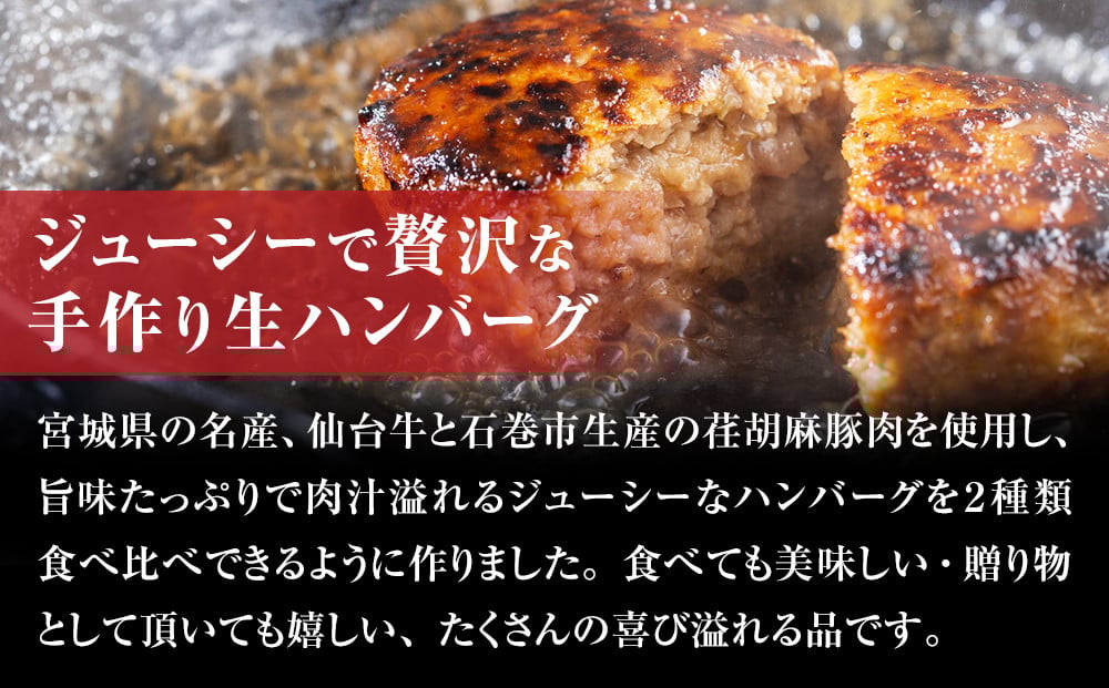 生ハンバーグ 2種 10個 ( 120g×各5個 ) 食べ比べセット 仙台牛 仙台牛100% 荏胡麻豚 えごま豚100% ハンバーグ 手作り はんばーぐ おかず 個包装 簡単 便利 冷凍 お惣菜 惣菜