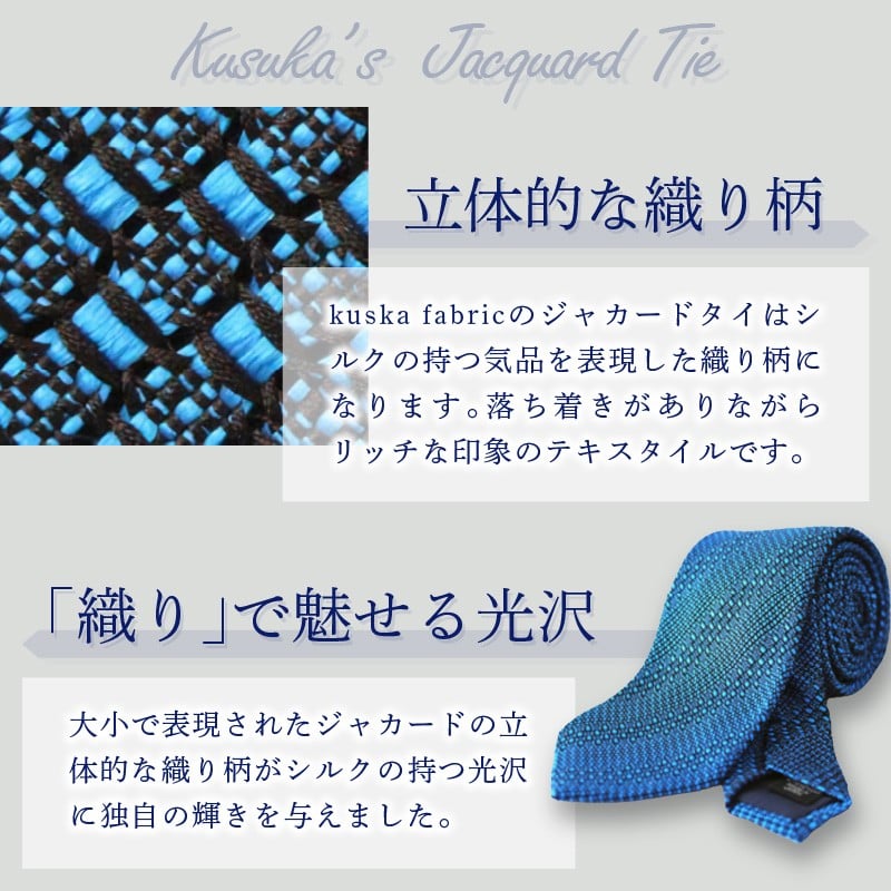 - kuska fabric 丹後ジャカードタイ【丹後ブルー】世界でも稀な手織りネクタイ(京丹後市・与謝野町共通返礼品) クスカ KUSKA シルク ネクタイ 国産 日本製 メンズファッション プレゼント 手縫い ブランド 青色 KF00032