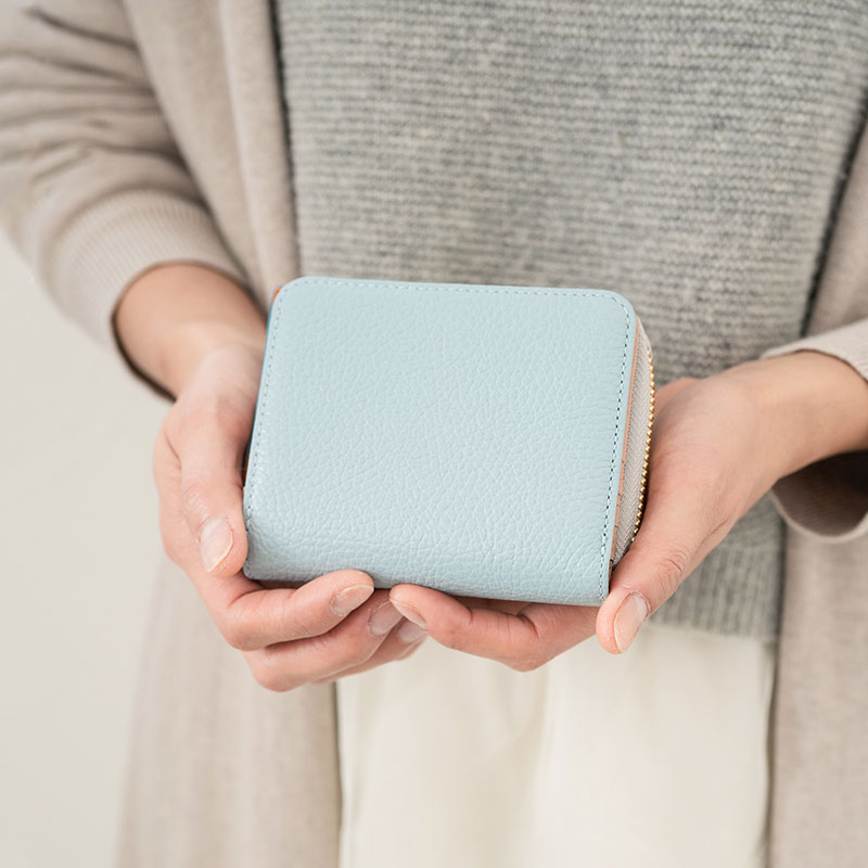 - 【ふるさと納税】豊岡財布 TUTUMU ITA Z compact Wallet(SW201)スカイ / レディース 財布 本革 二つ折り ラウンドファスナー