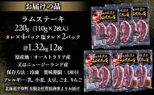 - 豪快に『厚切りラムステーキ』タレ・塩味セット12枚セット 大人数でも対応 ふるさと納税 人気 おすすめ ランキング 羊 ラム 肉 ステーキ おいしい 北海道 平取町 送料無料 BRTI010