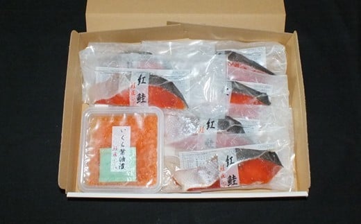 いくら醤油漬け100g×1P、紅鮭切身5切×2P A-36028