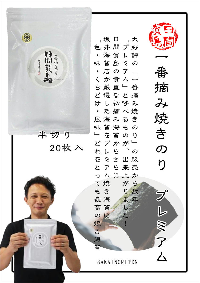 - 日間賀島 一番摘み 焼き海苔 プレミアム 計60枚 20枚×3袋 半切り のり 海苔 焼きのり