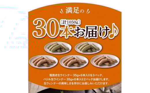 【要加熱】ジューシーな肉汁が堪らない!大分県産豚を使用した生ソーセージ(粗挽き・バジル計30本)_2097R