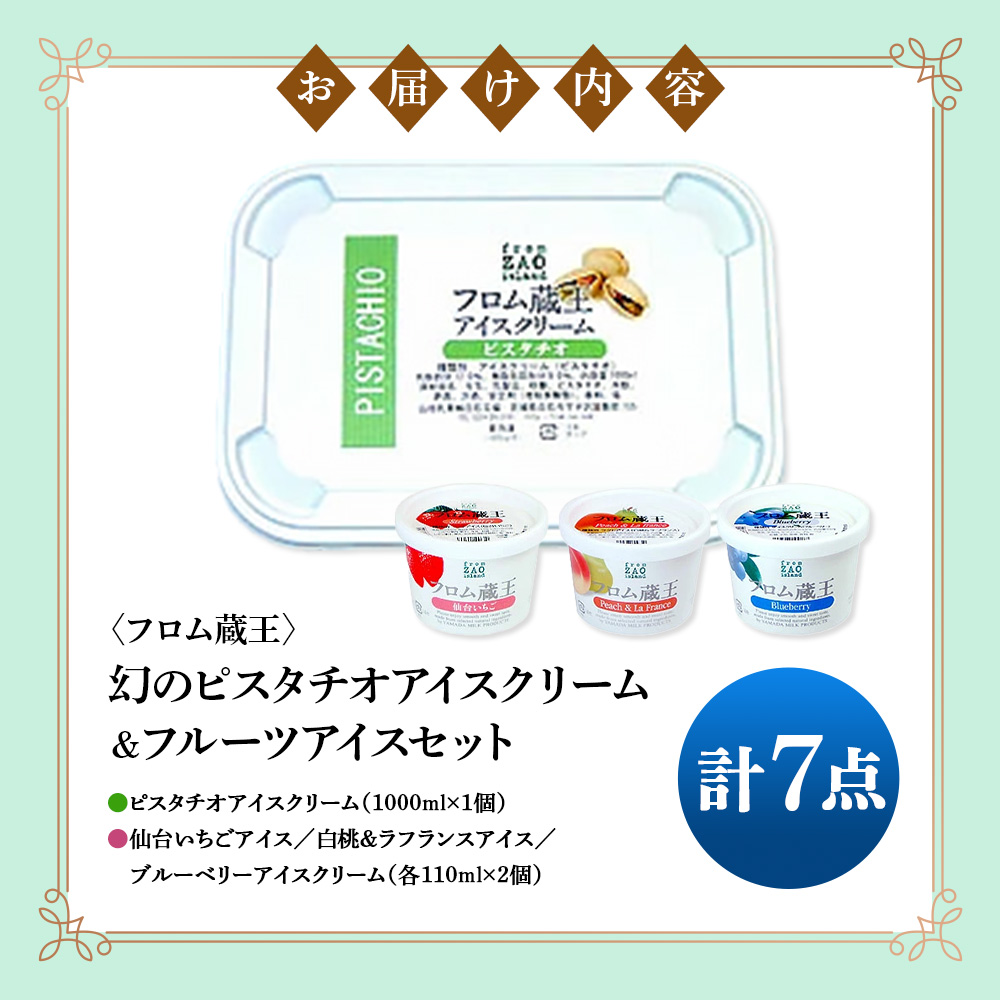 【フロム蔵王】幻のピスタチオアイスクリーム&フルーツアイスセット 計7点(ピスタチオアイス1L & カップアイス3種×各2個)【01164】