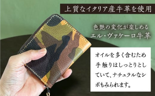 - 【グリーン】【職人手作り】迷彩柄イタリア産エル・ヴァケーロ牛革 ラウンドファスナー二つ折り財布 (迷彩柄2色)《築上町》【たけもとかばん】 革製品 レザー 牛革 [ABAM039]