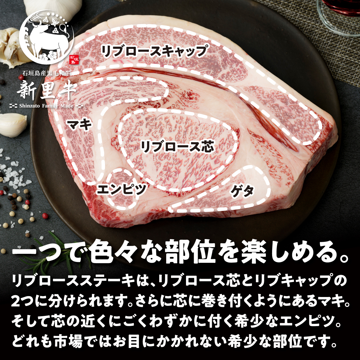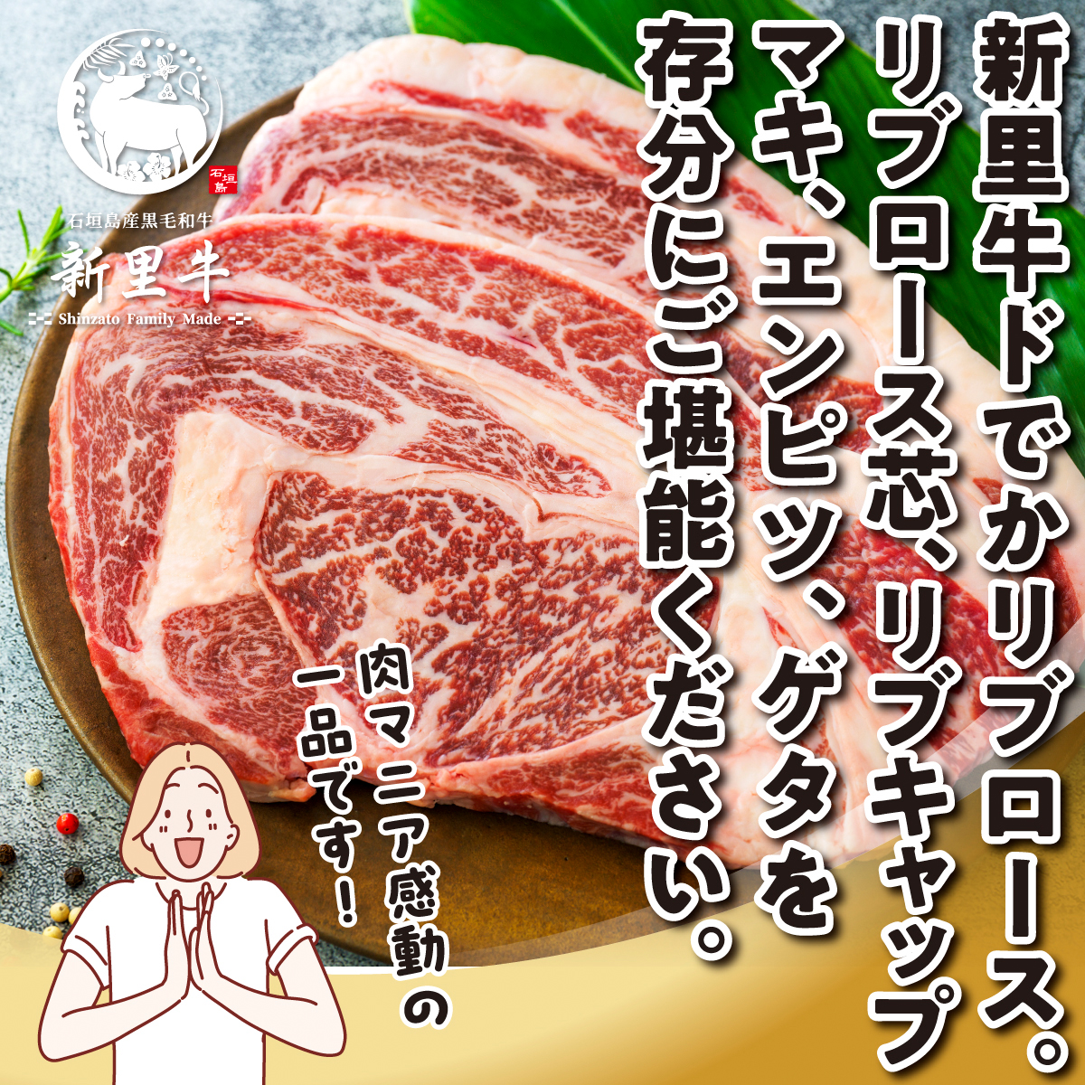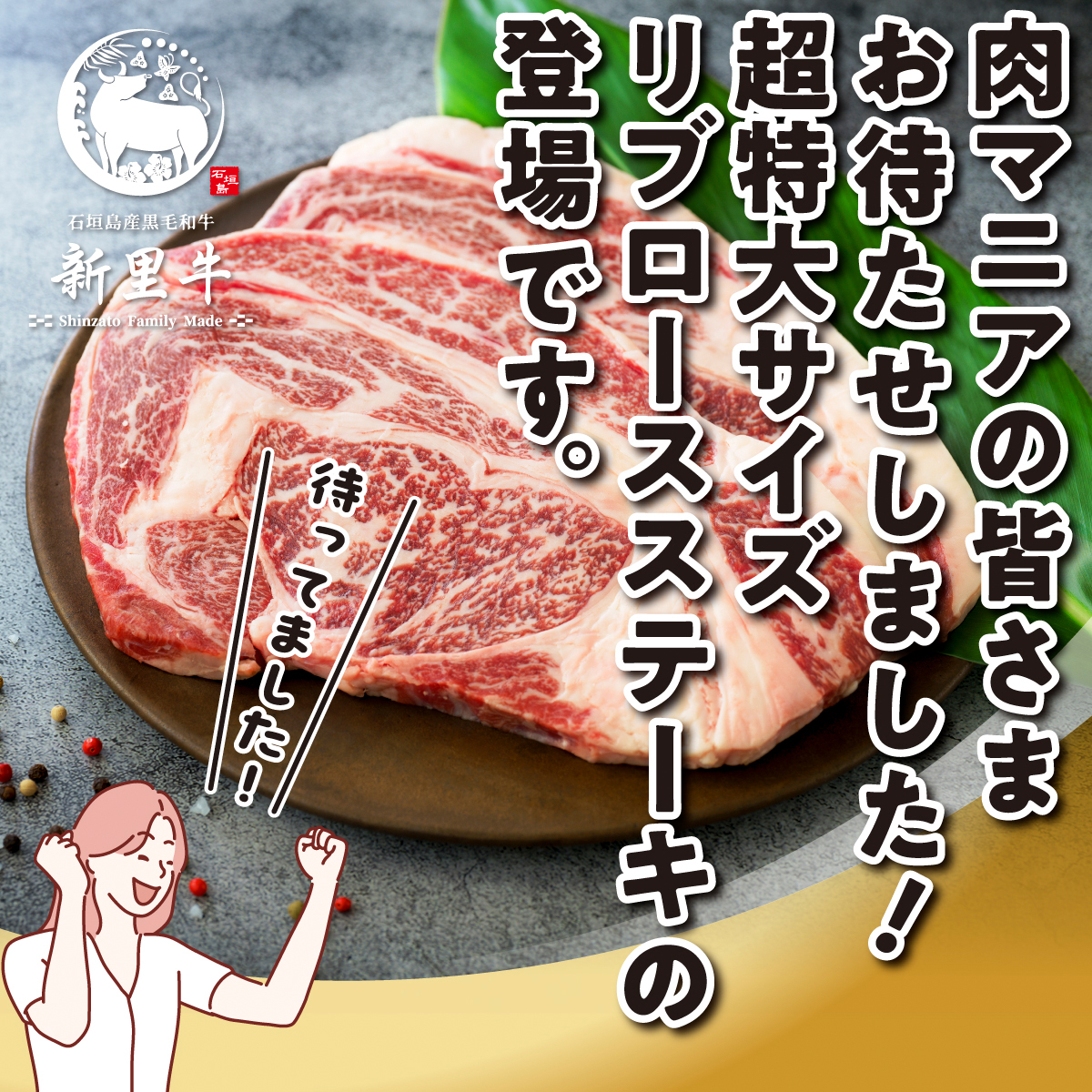 - 石垣島産 黒毛和牛 新里牛 どデカリブロースステーキ(不定貫200~300g×2)合計500g以上 ステーキ 焼肉 バーベキュー SZ-033