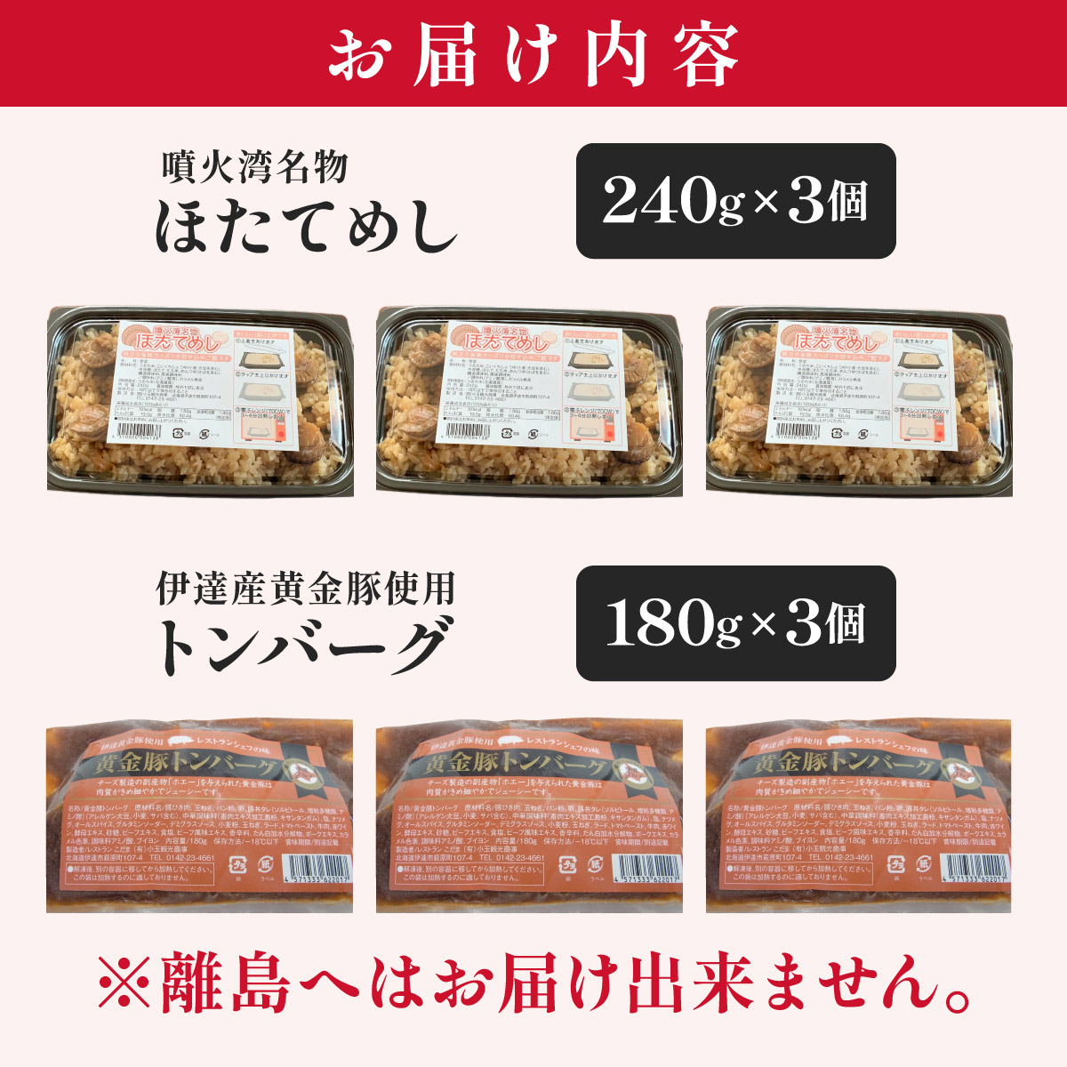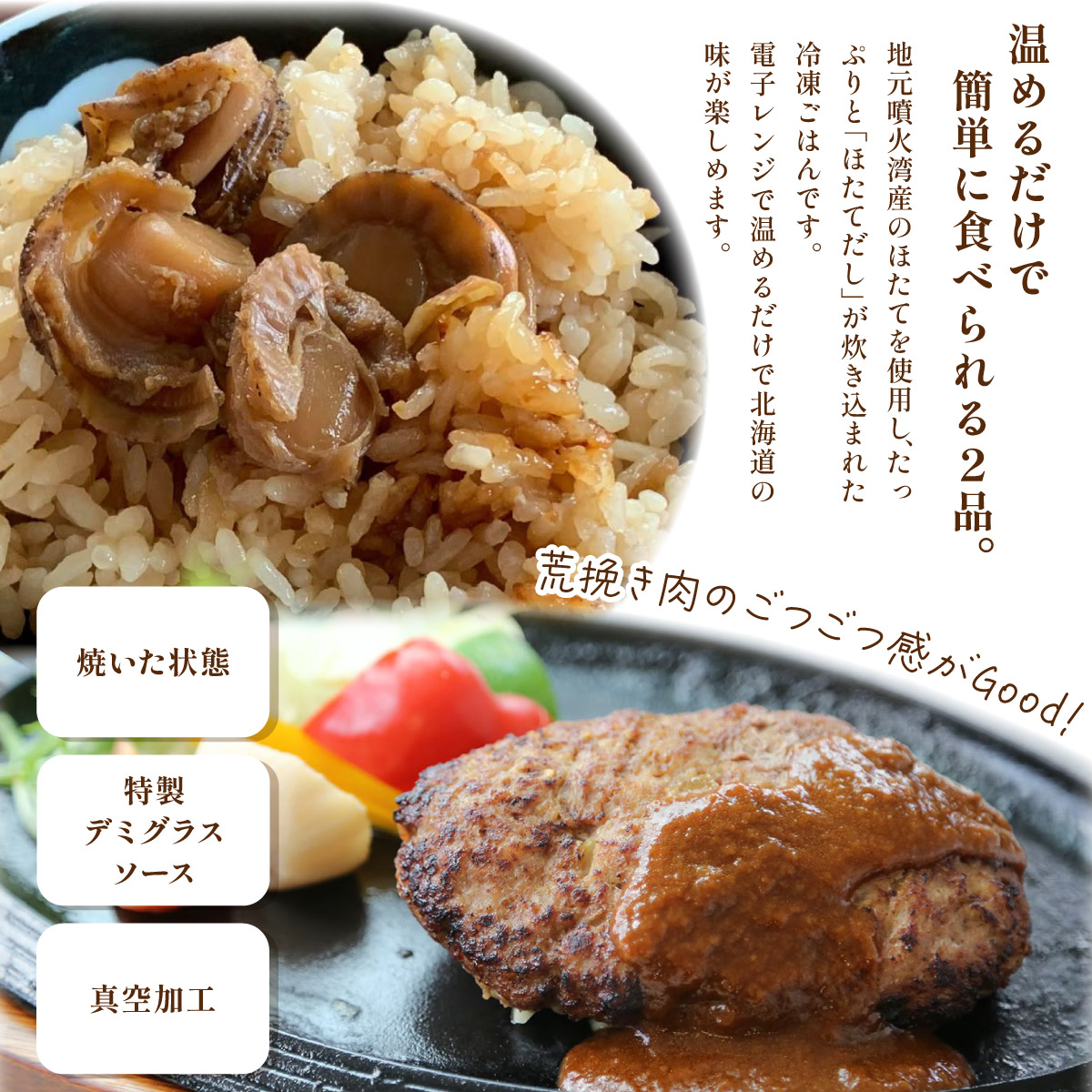 冷凍 噴火湾名物 ほたてめし240g&トンバーグ180g 各3個セット【55250668】