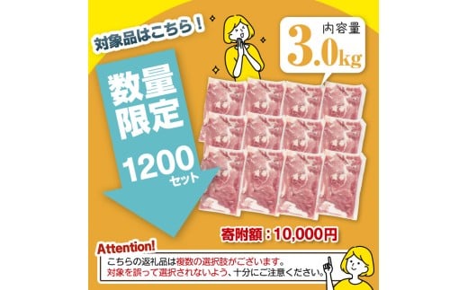 - <2026年3月中に発送予定>鹿児島県産 豚肉切り落とし (計3.0kg) 真空パック 豚肉 切り落とし【Rana】A1016-03-R