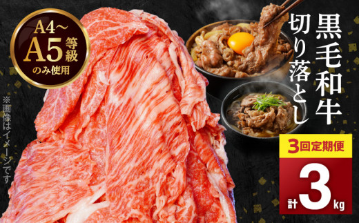 - S001-001-T03_04_【定期便3回】A4~A5等級 黒毛和牛 切り落とし1kg(500g×2P)3か月連続お届け【2026年4月発送開始】