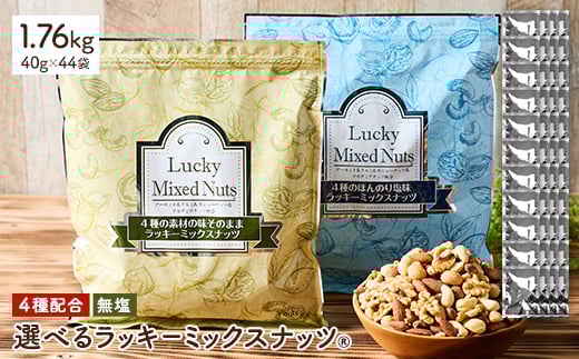 <無塩> 4種 ミックスナッツ 小分けタイプ (40g×44袋/計1.76kg) ラッキーミックスナッツ アーモンド クルミ マカダミアナッツ カシューナッツ ナッツ おつまみ 保存に便利なチャック付き袋 ダイエット【man363-D】【味源】