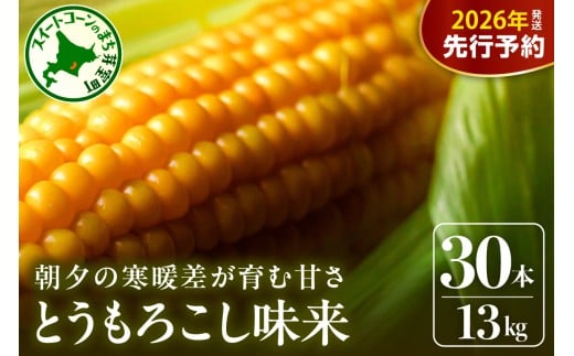 【先行受付】【2026年7月下旬~8月上旬頃配送】北海道十勝 芽室町産 朝獲れ とうもろこし 味来30本 me035-006c-26