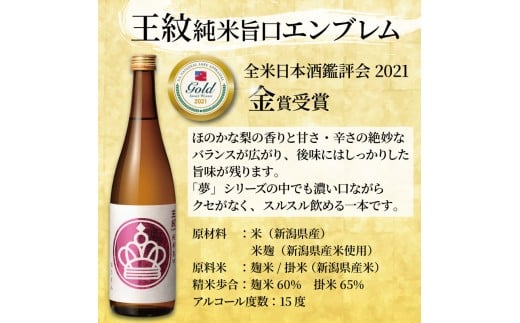 - 【金賞受賞】 王紋酒造 純米旨口 エンブレム 720ml 王紋 日本酒 純米 純米酒 新潟 酒 お酒 地酒 食中酒 受賞 四合瓶 ペアリング ギフト プレゼント お歳暮 お中元 年末年始 新発田 新潟県 新発田市 aumont010