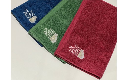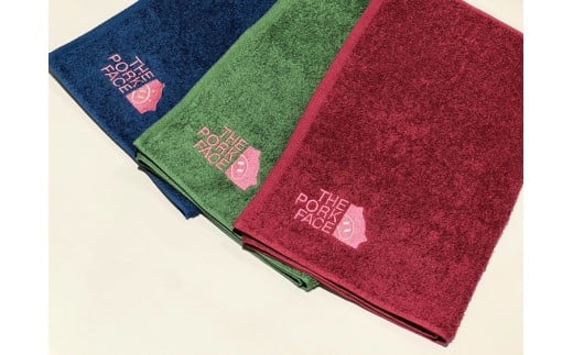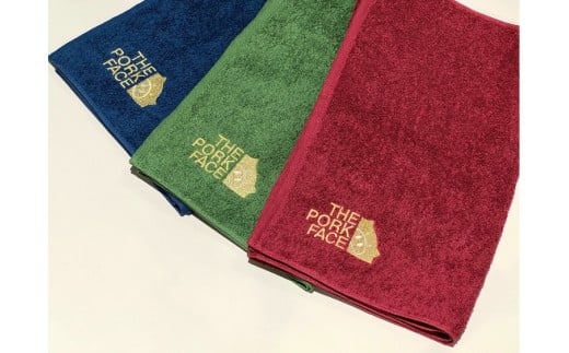 - 【金色刺繍3カラーセット】ポークフェイスの刺繍入り泉州タオル 3枚セット ※離島への配送不可