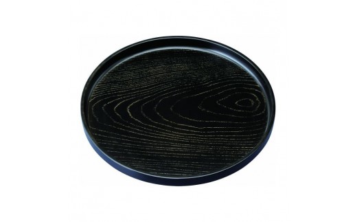 - 丸盆 24cm 金彩 黒ケヤキ杢 ノンスリップ [YG440]