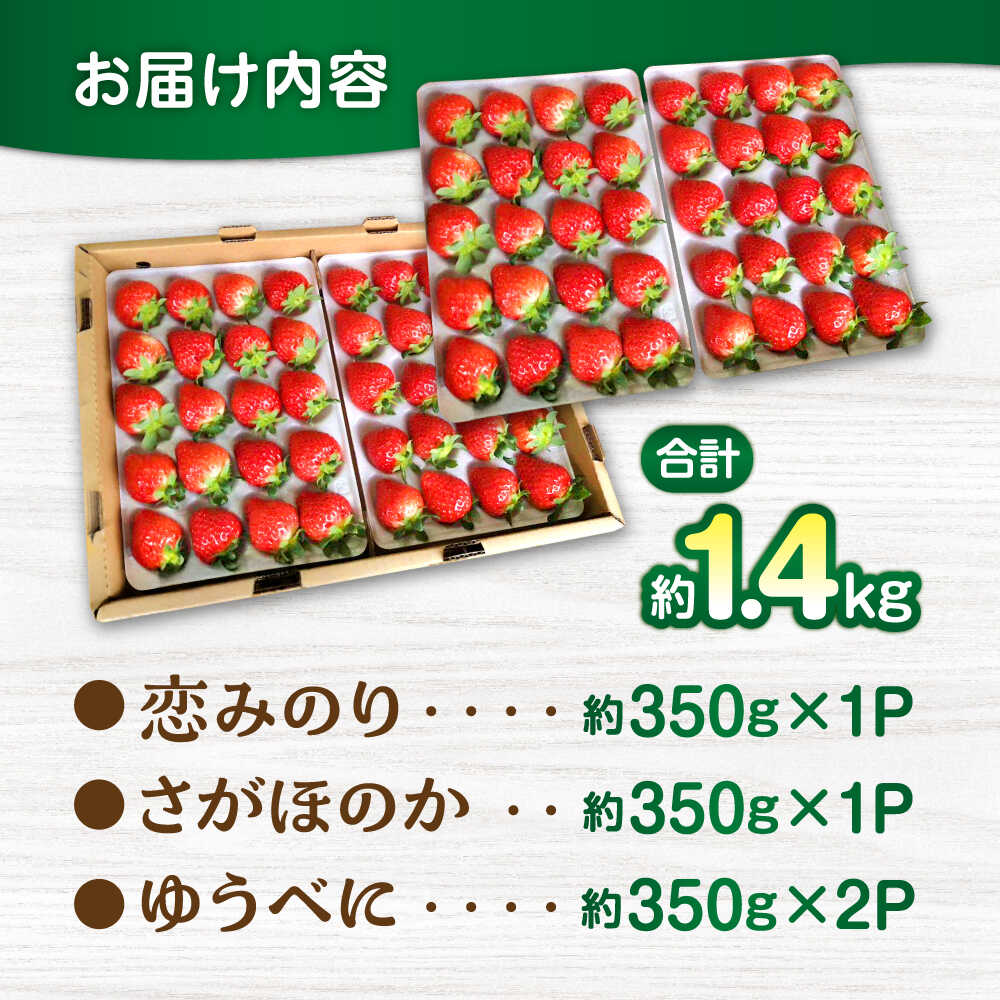 - 【ふるさと納税】【先行予約】3品種いちごの食べ比べセット(恋みのり/さがほのか/ゆうべに)百花園ファーム 約1.4kg(約350g×4P)20粒/P Lサイズ 【亀井通産 株式会社】[AYBQ086]