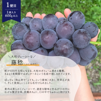 <発送月固定定期便><2026年先行予約>藤稔とシャインマスカットの1房お試し2回便(岡山産)全2回【4065820】