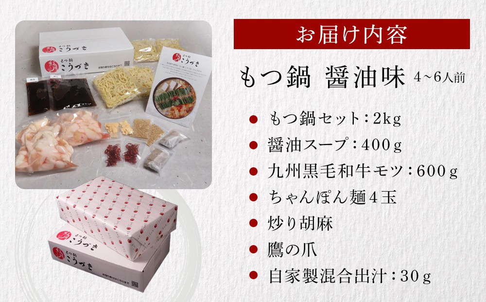 もつ鍋 醤油味(4~6人前)【もつ鍋 もつなべ 鍋 なべ もつ 鍋セット 鍋料理 牛もつ ホルモン ほるもん ホルモン鍋 冷凍 国産 人気 福岡 土産 九州 博多 ご当地 福岡県 大任町 AD004】