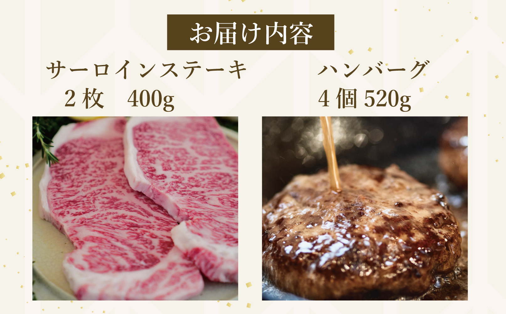 - 【セット】佐賀牛サーロインステーキ200g×2枚 計400g・柔らかハンバーグ130g×4個