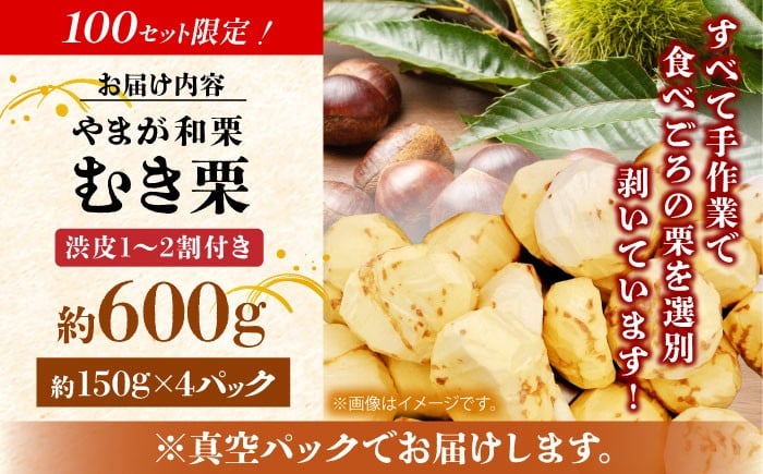 やまが和栗【先行予約】 【風味豊か♪ちょっと渋皮つき】大粒むき栗 渋皮つき 約600g(約150g×4pc)小分け 栗【古川農園】 [ZES002]