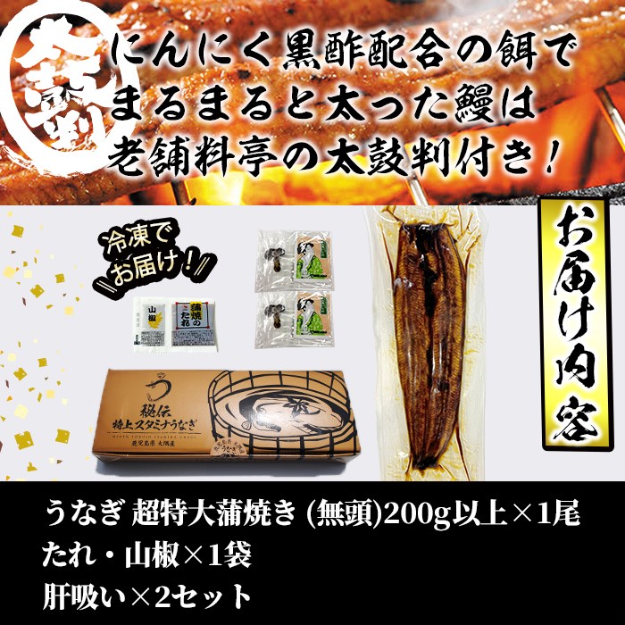 - 【丑の日までに配送】【数量限定】鹿児島県産!秘伝の特上スタミナうなぎ超特大蒲焼き1尾<200g以上!>肝吸いセット! a0-400