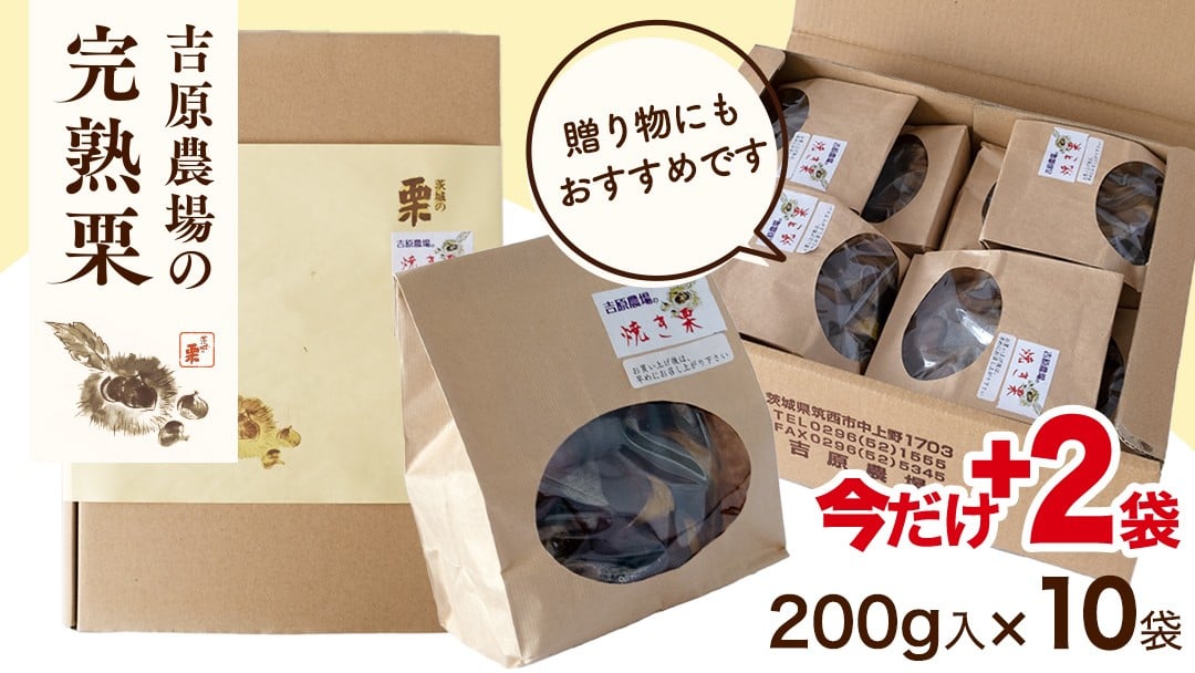 - 【 期間限定 +2袋 】 【 吉原農場 の 完熟栗 】 熟成 焼き栗 10袋 ⇒ 12袋 ( 2kg ⇒ 2.4kg ) 令和7年産 完熟 栗 くり クリ 栗ごはん 贈答 ギフト 果物 フルーツ 数量限定 旬 秋 冬 正月 おせち [CX017ci]