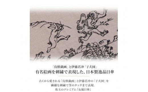 【シノワズリーモダン京都】女優日傘 鳥獣戯画 伊藤若冲 刺繍 かわず張りショート長日傘|京都 日傘ブランド おしゃれ 人気[ 京都 日傘 ブランド 完全遮光 晴雨兼用 おしゃれ 軽量 人気 おすすめ ギフト プレゼント お取り寄せ 通販 送料無料 ふるさと納税 ]