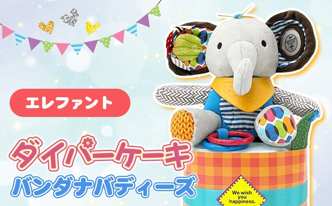 No.344 ダイパーケーキ/バンダナバディーズ / おむつケーキ 出産祝 ギフト 贈り物 女の子 男の子 赤ちゃん ベビー ベビーギフト ぬいぐるみミラー 歯がため カシャカシャ音 おむつ 紙おむつ Sサイズ おもちゃ 千葉県