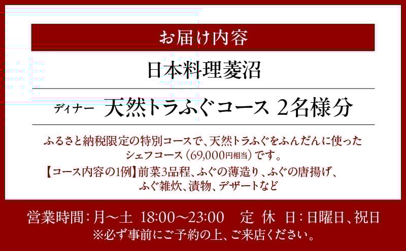 【日本料理菱沼】《ディナー》天然トラふぐコース 2名様分(ぐるなびセレクション)
