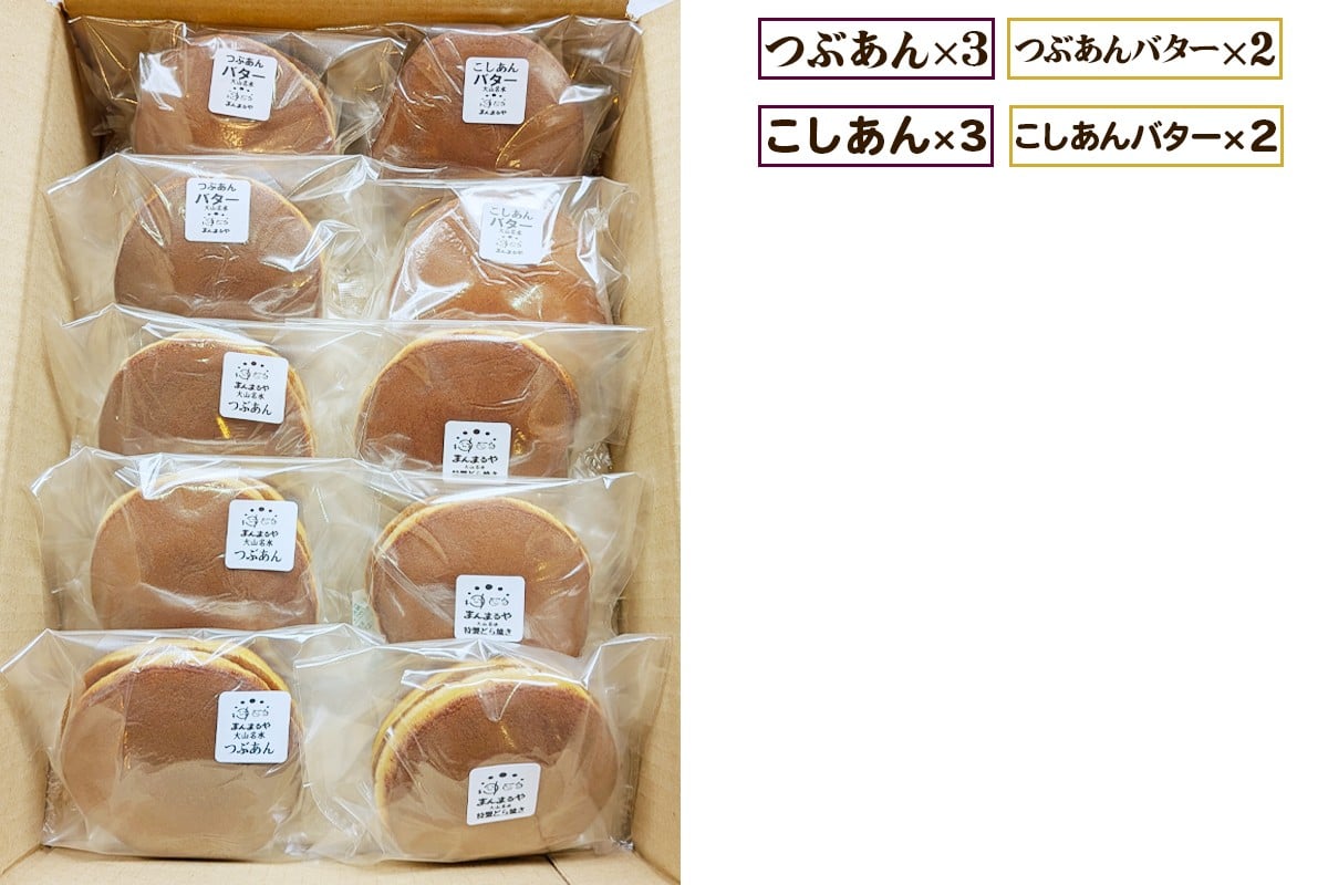 手焼き特製どら焼き 4種アソート 10個入り [つぶあん、こしあん/各3個] [つぶあんバター、こしあんバター/各2個]|よくばり アソートセット 詰合せ 和菓子 あんこ スイーツ どらやき [0896]