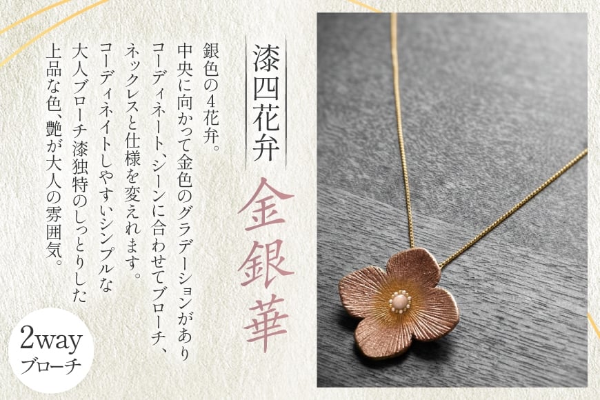 - 漆塗り 和風 ネックレス チェーン 漆四花弁金銀華 [越久米作 富山県 朝日町 34310574] ブローチ 2way アクセサリー 小物 アクセサリー