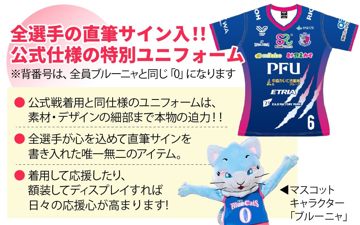 【PFUブルーキャッツ石川かほく】オーセンティックユニフォーム 1枚(全選手サイン入り)| ユニフォーム BLUECATS PFU バレーボール 直筆サイン入り ファングッズ スポーツ レアグッズ