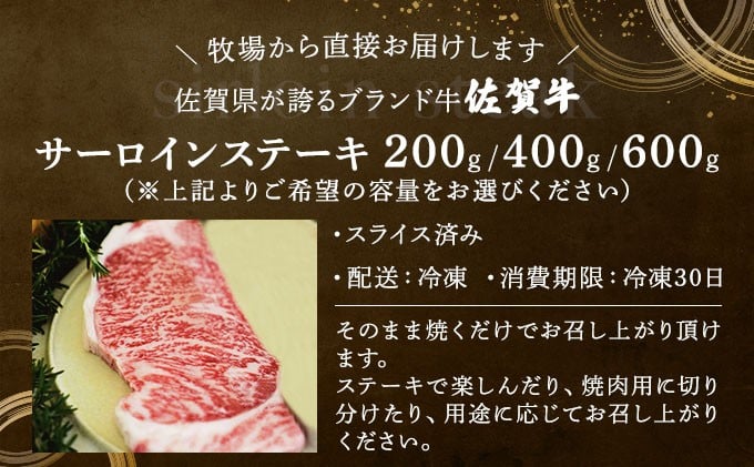 <選べる容量>佐賀牛サーロインステーキ(200g/400g/600g)佐賀 大町町 肉 お肉 牛肉 サーロイン ステーキ 焼肉 贈答 ブランド牛 国産 霜降り ギフト グルメ 国産牛 特産品 お祝い 贈り物 プレゼント 冷凍