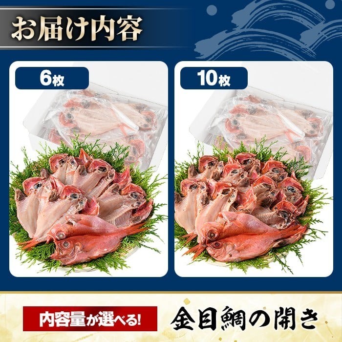 - <内容量が選べる!>金目鯛の開き(計6~10枚) 鯛 たい タイ キンメ ひらき おかず おつまみ 惣菜 リピート 魚介類 海産物 冷凍 加工品 国内加工 干物【グローバルフーズ】