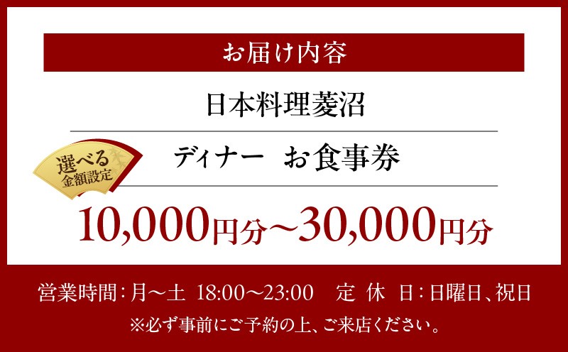 【日本料理菱沼】《ディナー》10,000円分~30,000円分お食事券(ぐるなびセレクション) │ 東京 六本木 麻布 食事 チケット 日本料理 ディナー ワイン 体験