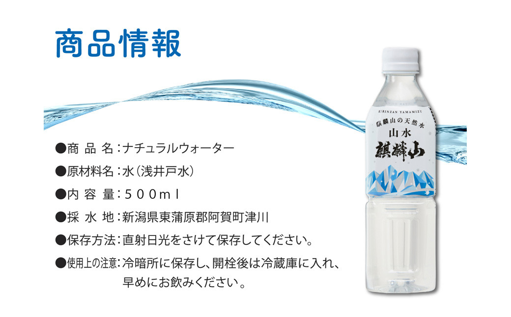 - 仕込み水 麒麟山 山水(やまみず)KIRINZAN WATER 500mℓ×24本