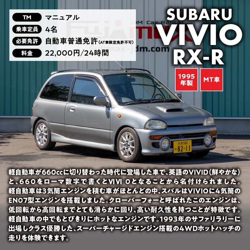 - 【スポーツカーでおおいたを走ろう!】スポーツカー乗車体験利用券 9,000円分チケット≪フジマックスJDMカーレンタルで使える利用券≫ レンタカー レンタル 国産スポーツカー ヴィヴィオRXR VIVIO シビック 限定販売モデル アルトワークス 希少 マニュアル車 MT車 P01088