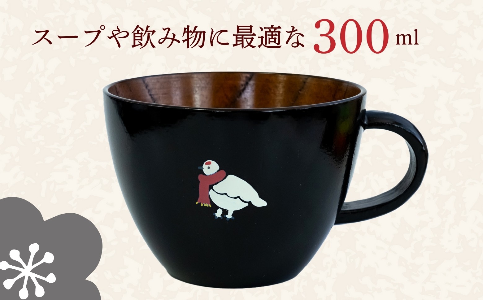 - 【黒】 漆絵入り 木製 スープマグ 300ml【冬支度ver】 (Ba-041) | ギフト マグ マグカップ コップ カップ スープマグ